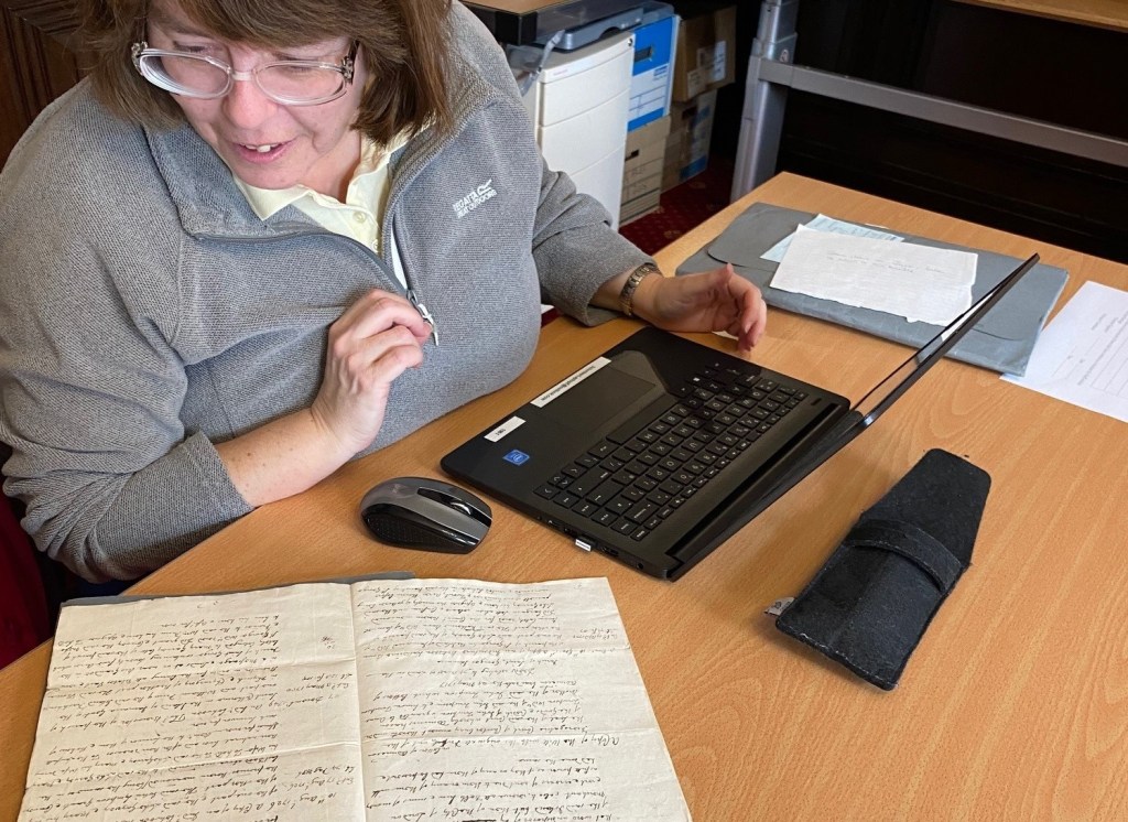 Each volunteer has been working on individual collections, and becoming somewhat of an expert on the person whose papers they are transcribing. As well as producing great transcriptions, the volunteers are also able to help me with my own research, through sharing knowledge on the collection they are spending a lot of time on and connecting the dots through discovering their person’s family connections, Staffordshire connections and colonial connections. Throughout the sessions, there is always a lot of knowledge exchanged and I learn a vast amount about the local history of Staffordshire from the volunteers. Collaboration is also an important element, and all the volunteers use their palaeography skills to help one another decipher difficult words.
